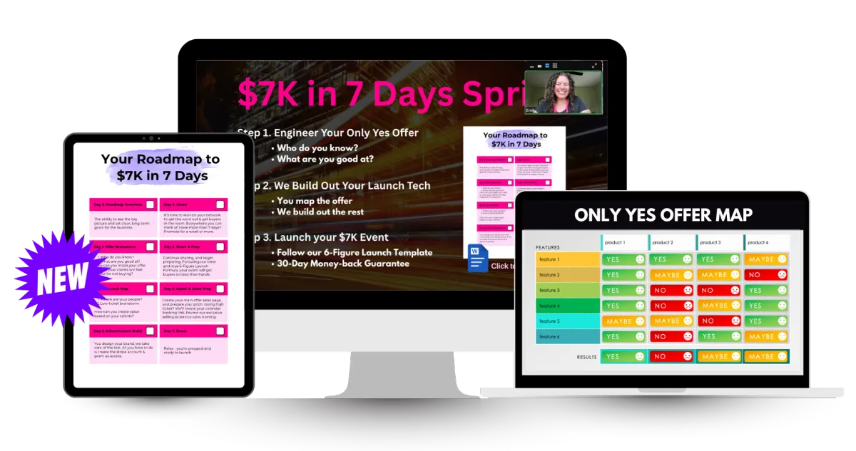 Her $7K in 7 Days Launch Method has helped professionals, coaches, and consultants create consistent revenue streams while keeping balance and freedom.